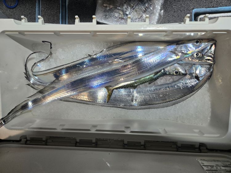 2025年9月5・6日 ナイト太刀魚釣り エサ;イワシ、キビナゴ 仕掛け:天秤、テンヤ