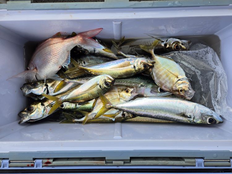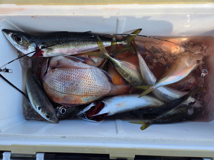 2025年9月17・19日 マダイ五目釣りエサ;オキアミ仕掛け:天秤、胴付き