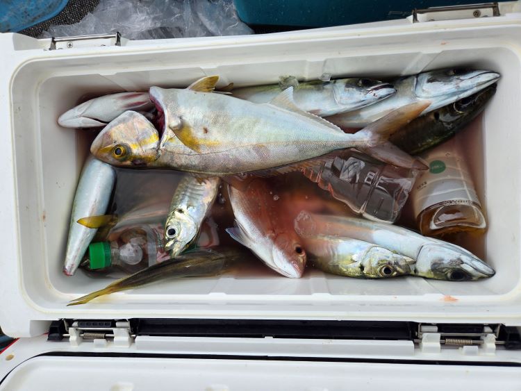 潮汐:若潮、中潮釣 果:17日は、20から35センチのサバが良く釣れました。マダイ、アジ、ネイゴも釣れました。19日は、30センチ前後の良型アジが2時間ほどですが入れ食いでした。1.5キロほどのマダイも釣れました。そ の 他 :