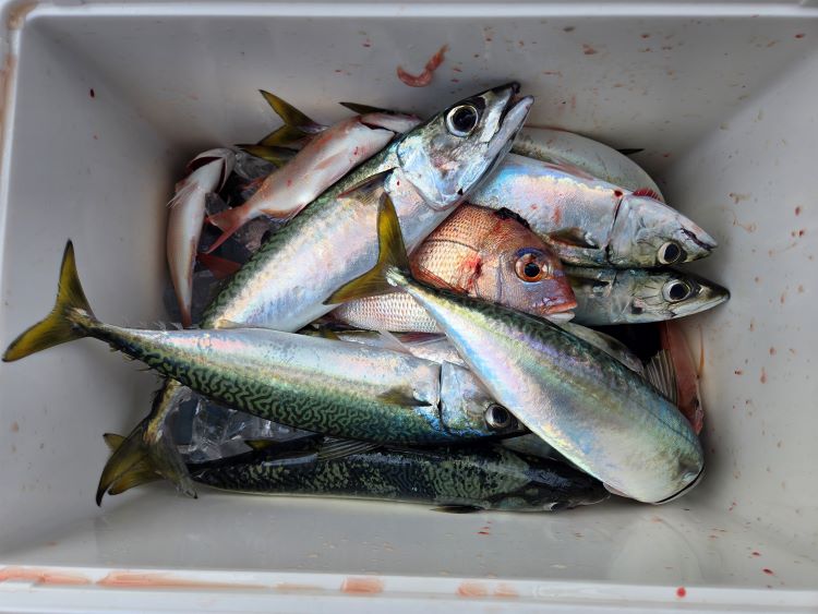 2025年9月21日 マダイ五目釣りエサ;オキアミ仕掛け:天秤、胴付き