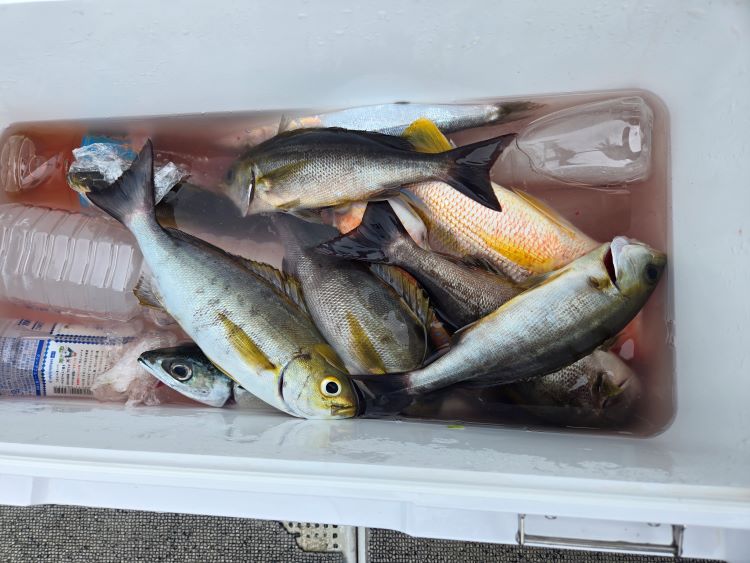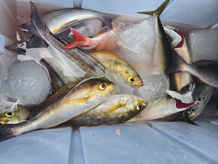 潮汐:小潮釣 果:イサキ、サバ、マダイ、クロホシフエダイ、イラ、ブリ、ハガツオといろいろ釣れました。そ の 他 :