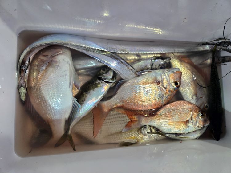 2025年9月15日 マダイ五目超早朝便 エサ;オキアミ、キビナゴ仕掛け:天秤、胴付き