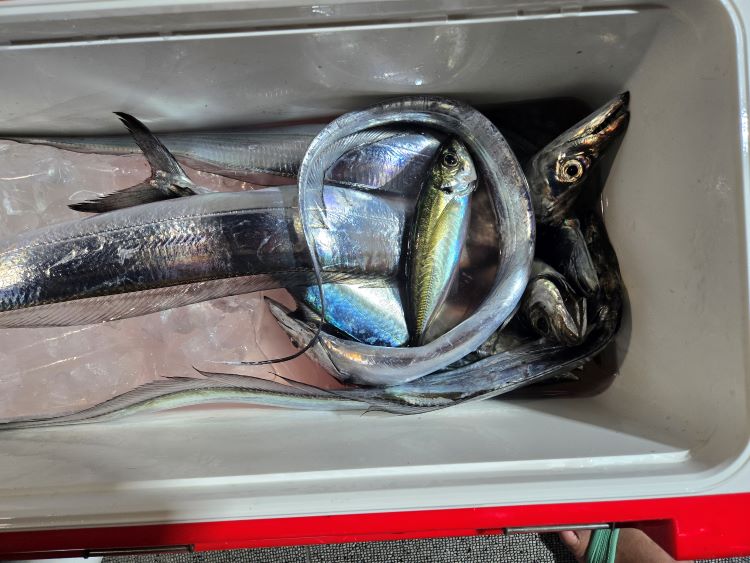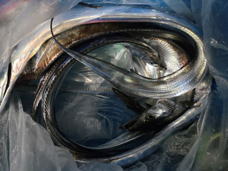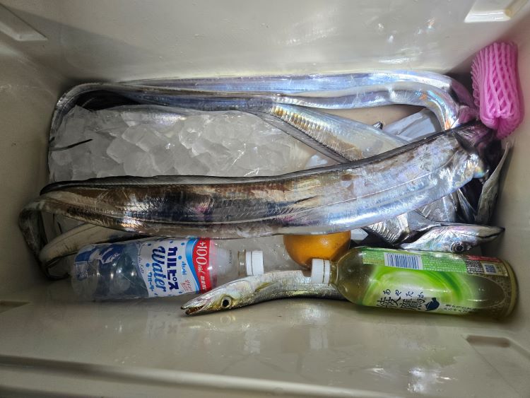 2025年10月13日 ナイト太刀魚釣り エサ;イワシ、キビナゴ 仕掛け:天秤、テンヤ