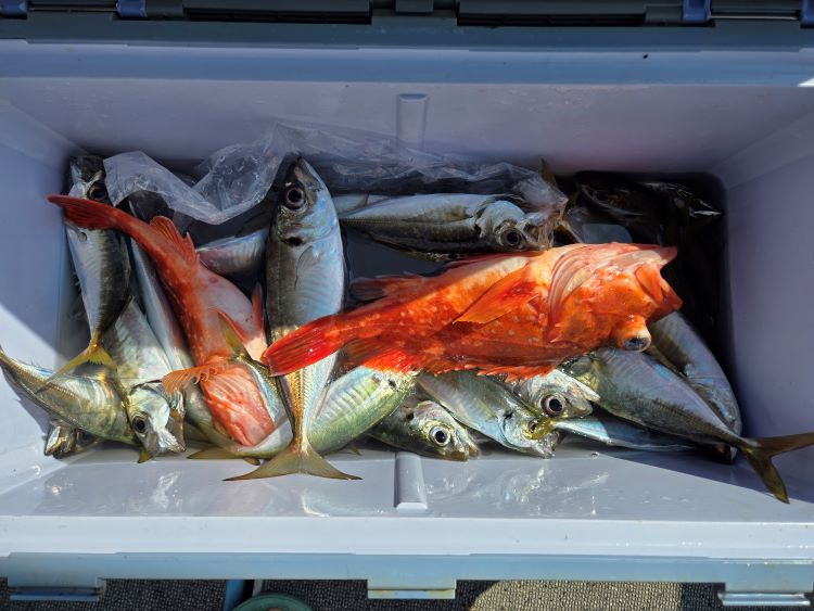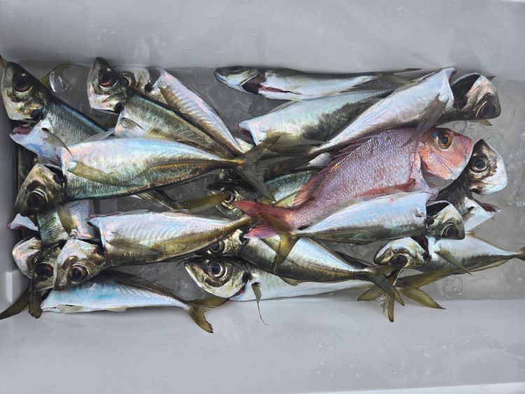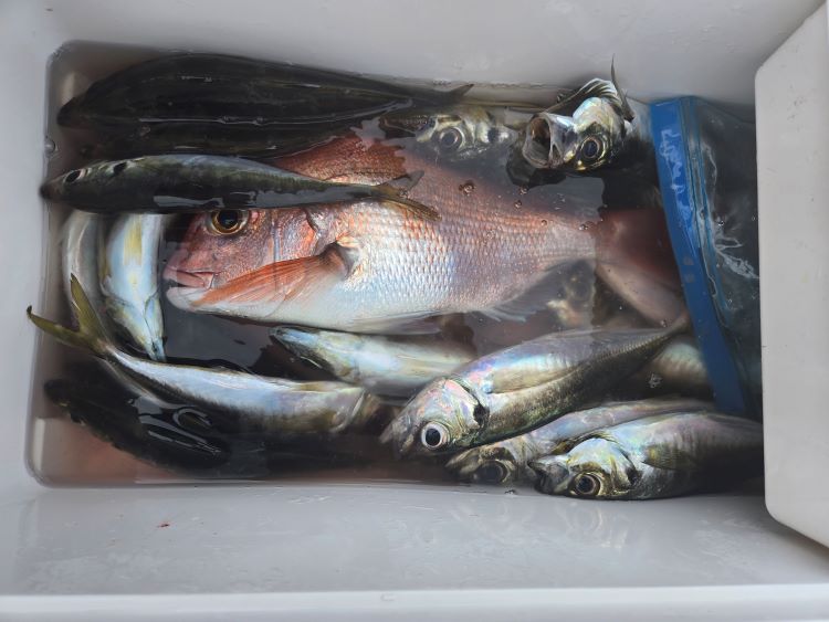 2025年10月15・18日 マダイ五目釣りエサ;オキアミ 仕掛け:天秤、胴付き