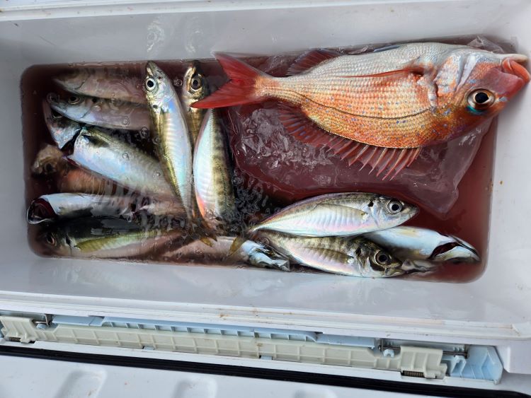 2025年12月5・6・7・8日 マダイ五目釣り エサ;オキアミ仕掛け:天秤、胴付き