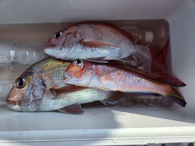 2025年12月21・22日 マダイ五目釣りエサ;オキアミ仕掛け:天秤、胴付き
