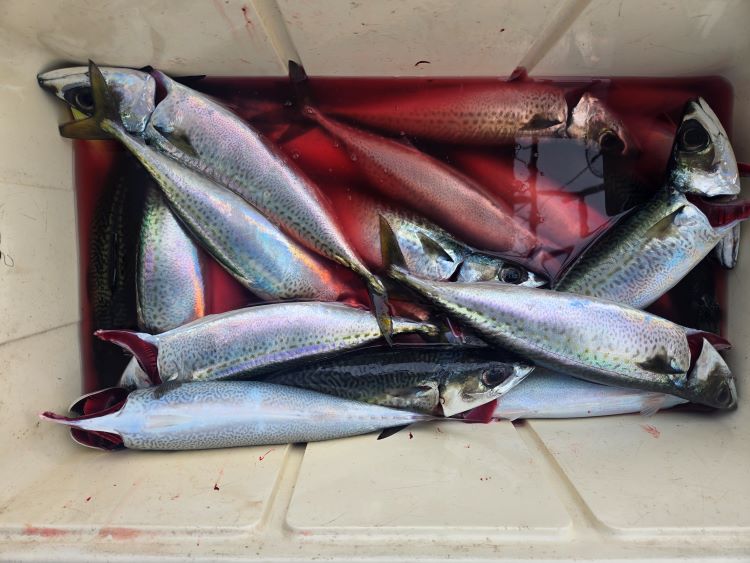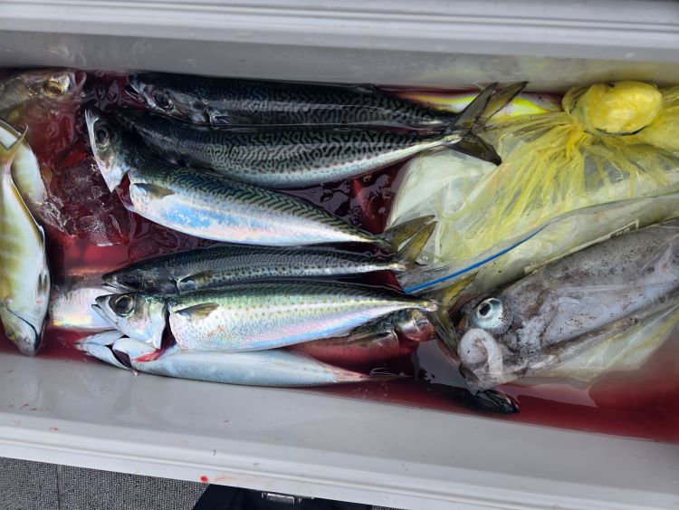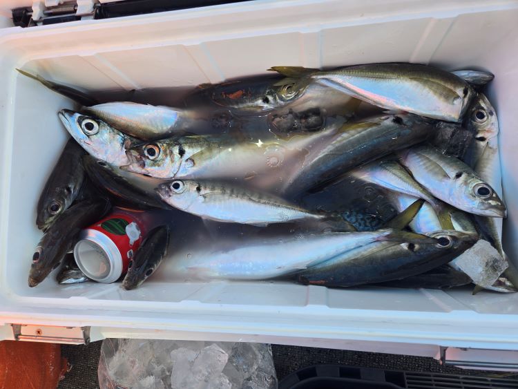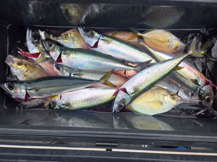 潮汐:大潮、中潮釣 果:5日は、サバが入れ食いでした。6日は、アジサバ入れ食いでした。35センチほどのアジも釣れていました。ヤズ、アオリイカも釣れました。そ の 他 :