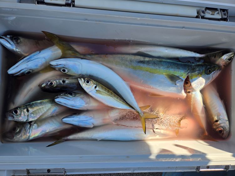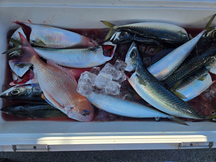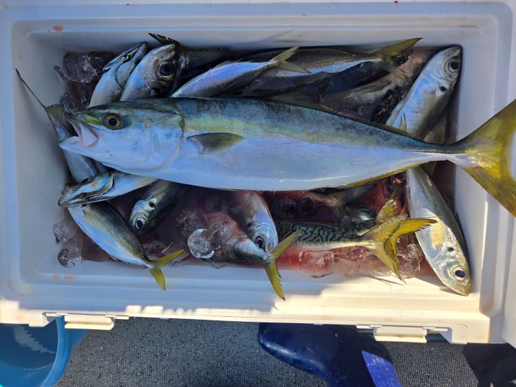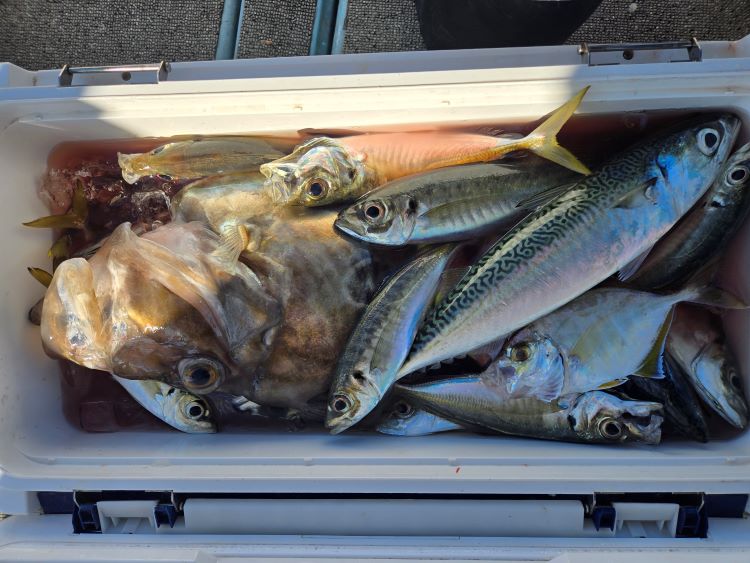 潮汐:中潮釣 果:両日とも20から35センチのアジサバが入れ食いでした。ヤズ、ハマチ、マダイ、マトウダイも釣れました。そ の 他 :