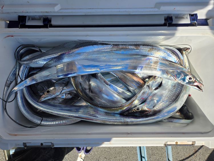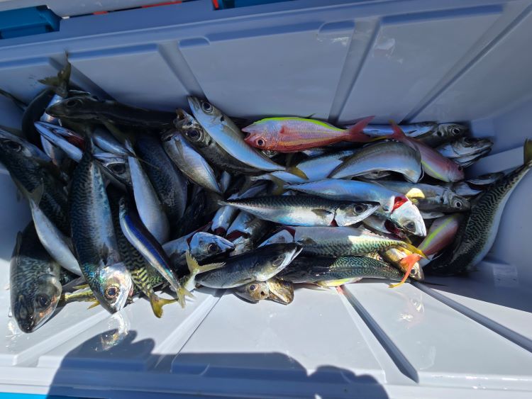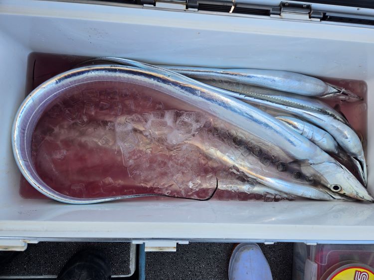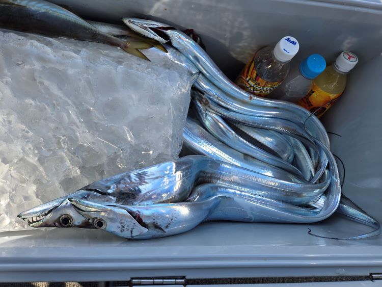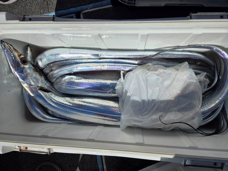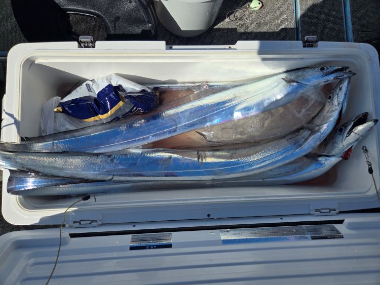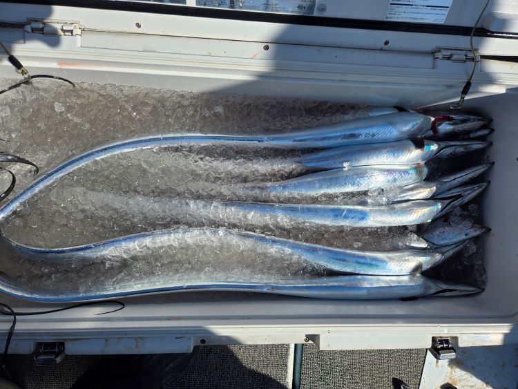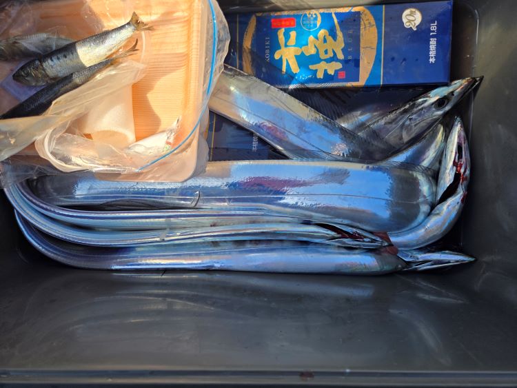 潮汐:中潮釣 果:F3からF6サイズの太刀魚を釣る人で19日は、15匹。20日は、20匹ほど釣れました。 そ の 他 :18日の五目釣りは、20から35センチののアジサバが入れ食いでした。2人分の釣果。