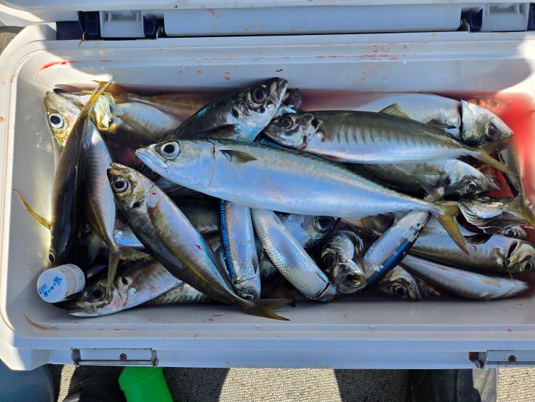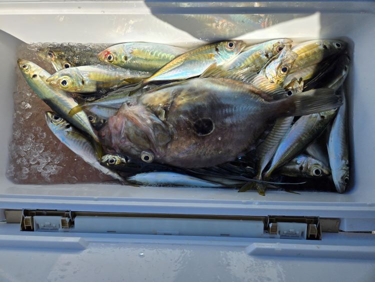 潮汐:長潮釣 果:20から30センチのアジが良く釣れました。釣る人で40匹。そ の 他 :